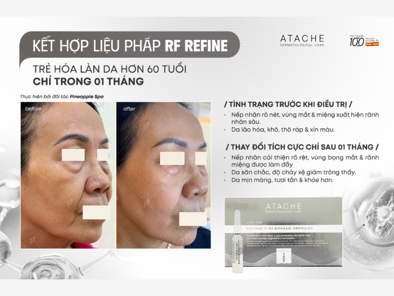 Việc tái tạo làn da lão hóa ở người trưởng thành cần một phương pháp chăm sóc đặc biệt để phục hồi độ đàn hồi và cải thiện kết cấu da. Pineapple Spa & Cosmetic đã mang đến giải pháp hiệu quả với liệu pháp RF Refine kết hợp cùng sản phẩm Antiage VB3 Biphasic Ampoules, giúp cải thiện tình trạng da lão hóa chỉ trong một tháng.